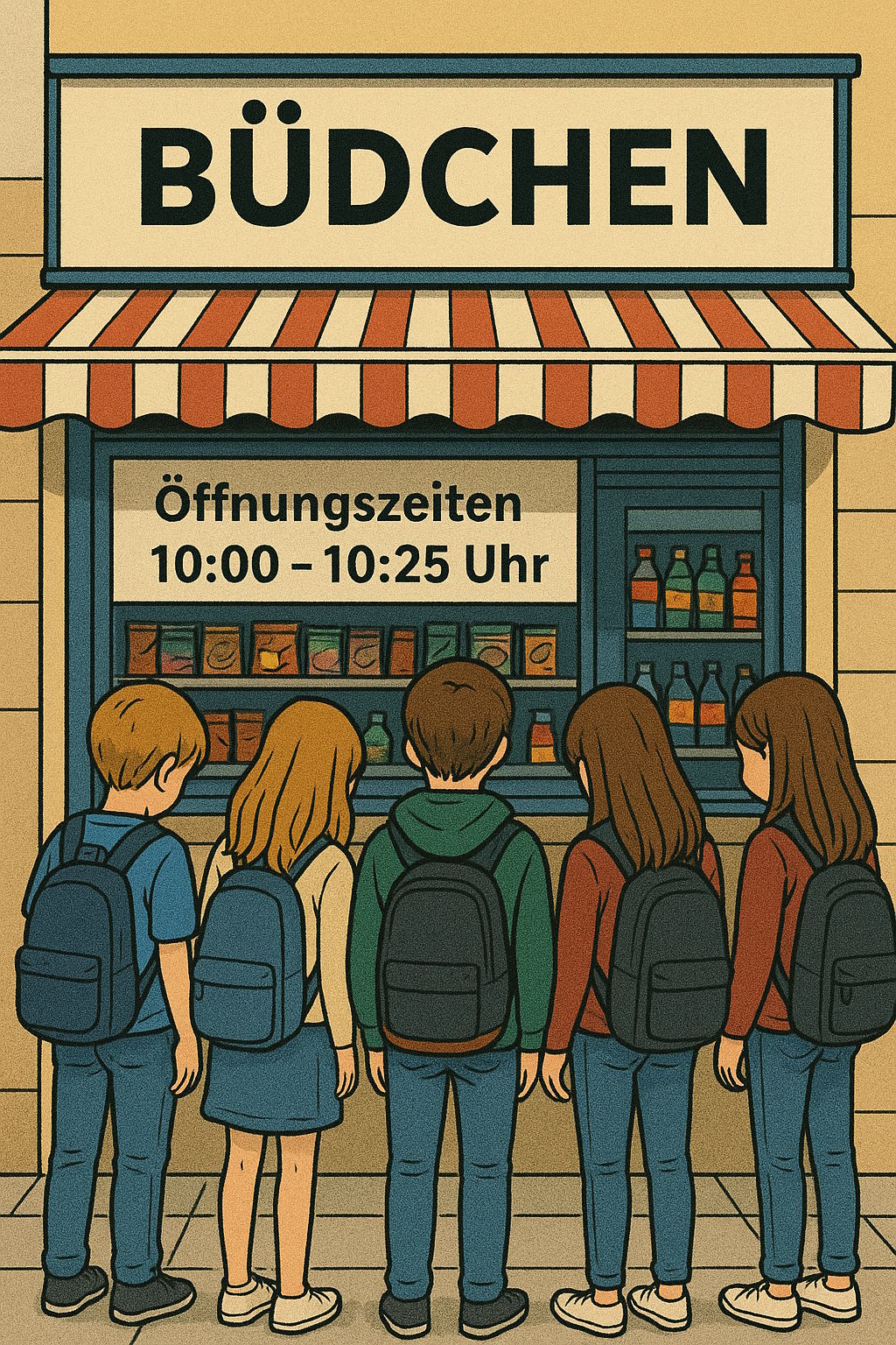 Das "Büdchen" in der Mensa ist nur in der Frühstückspause von 10:00 bis 10:25 Uhr geöffnet.