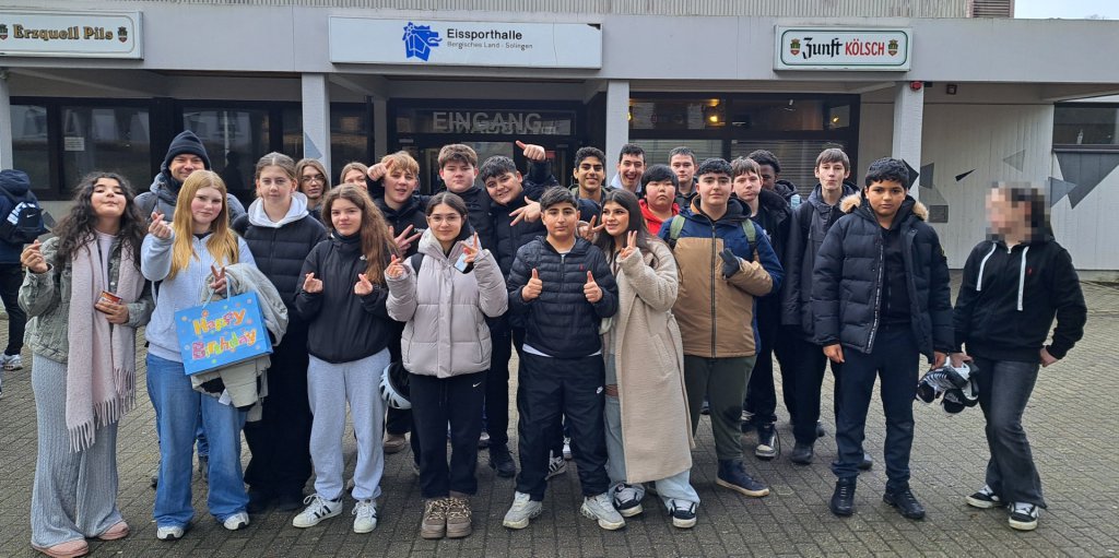 Am 30.01.2026 unternahmen zwei Klassen unserer Schule einen gemeinsamen Ausflug in die Eissporthalle Solingen. Die Anreise erfolgte umweltfreundlich und unkompliziert mit der sehr pünktlichen S-Bahn.