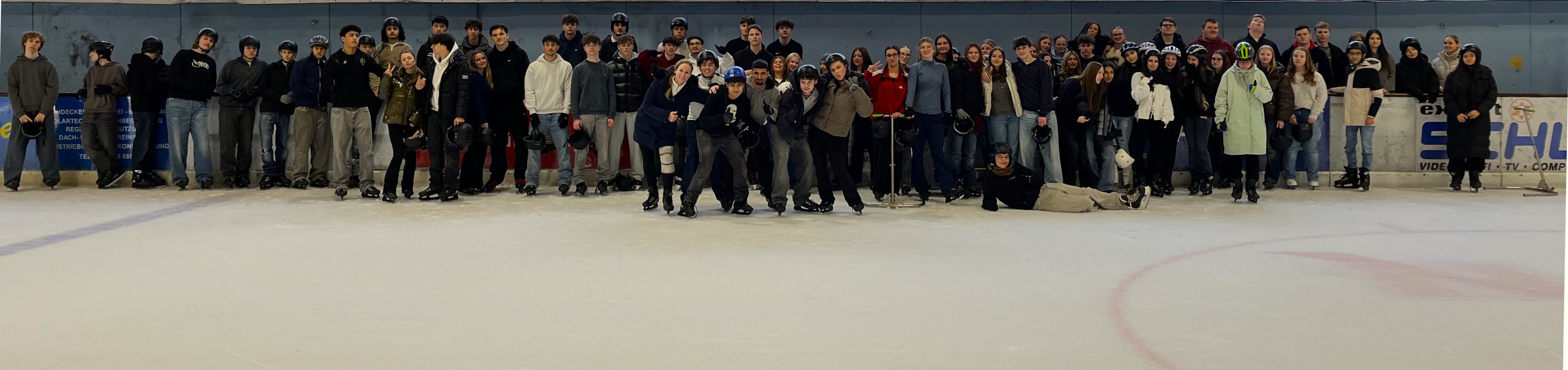 Am 12. Dezember war es wieder soweit: Das alljährliche Eislaufen der Jahrgangsstufen EF und Q1 in der Eissporthalle Solingen begleitet von Frau Mölleken, Herrn Malinowski und Frau Gymnich fand erneut statt. Teilweise mit Unterstützung durch die Eislaufhilfen wurde das Solinger Eis erobert und einige Runden auf dem Eis gedreht. Inspiriert durch die trainierenden Eiskunstläuferinnen versuchten sich ebenfalls ein paar der Schülerinnen und Schüler an kleinen Kunststückchen oder halfen ihren Mitschülerinnen und Mitschülern beim Fahren auf dem Eis.
