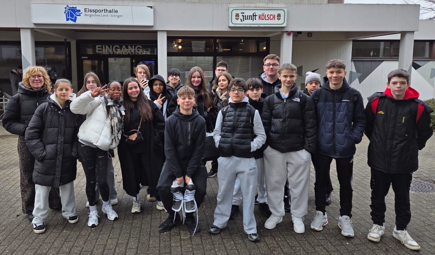 Am 30.01.2026 unternahmen zwei Klassen unserer Schule einen gemeinsamen Ausflug in die Eissporthalle Solingen. Die Anreise erfolgte umweltfreundlich und unkompliziert mit der sehr pünktlichen S-Bahn.