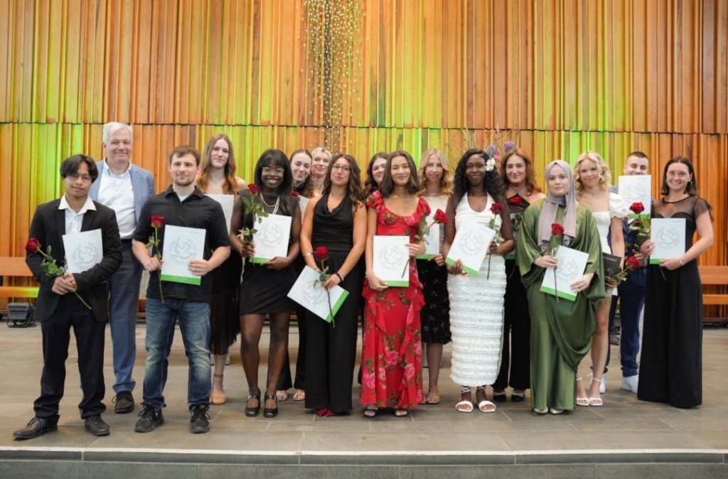 Begleitet von Applaus und stolzen Blicken wurden die Abiturient:innen gruppenweise nach Leistungskursen aufgerufen und erhielten Glückwünsche und ihre Zeugnisse durch die Schulleitung sowie ihre Beratungslehrkräfte Fabia Cicerello, Helena Scholz und Sven Thompson.