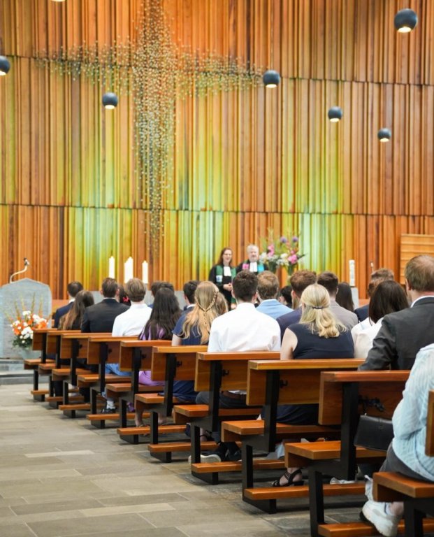 In der Friedenskirche in Hilden fand mittags die Zeugnisvergabe statt – geleitet durch Diakonin Verena Kipp und Prädikant Christoph Simons.