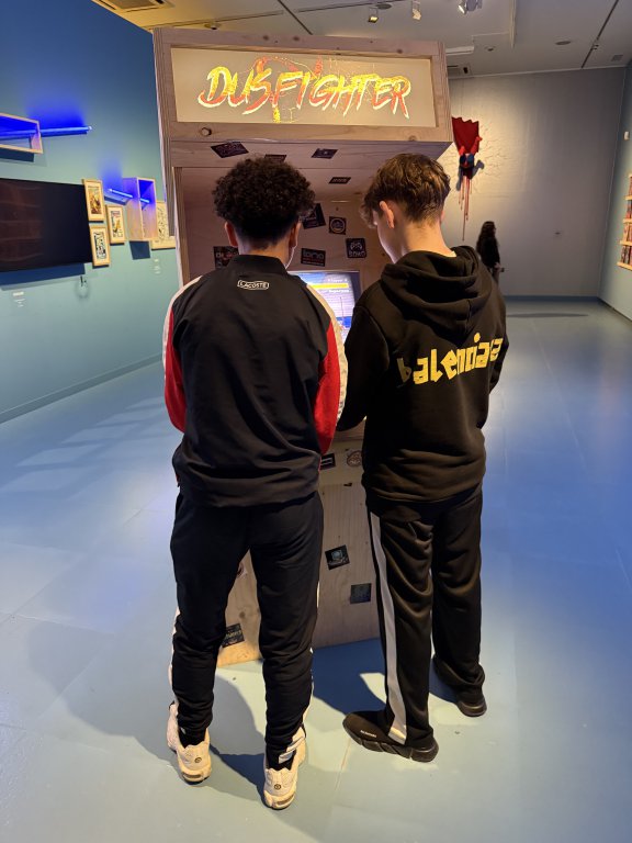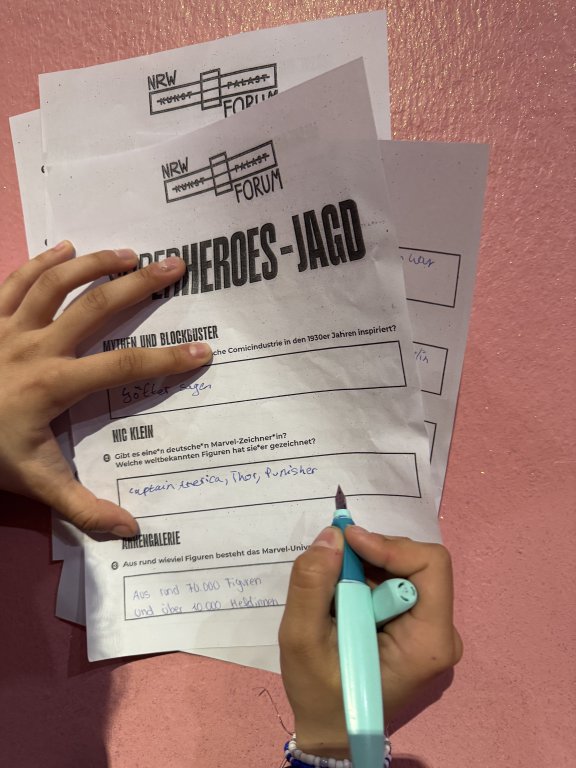 Während des Ausstellungsbesuchs hatten die Schülerinnen und Schüler unter dem Motto „Superheroes-Jagd“ die Gelegenheit mit Hilfe eines Diskussionsbogens die ausgestellten Werke genau zu betrachten, mehr über die Entstehung von Comics zu erfahren und sogar einige Skizzen und Originalzeichnungen zu bewundern. Zudem wurden in der Schau auch Aspekt von Politik und Propaganda wie auch Vielfalt und Zukunft aufgegriffen.