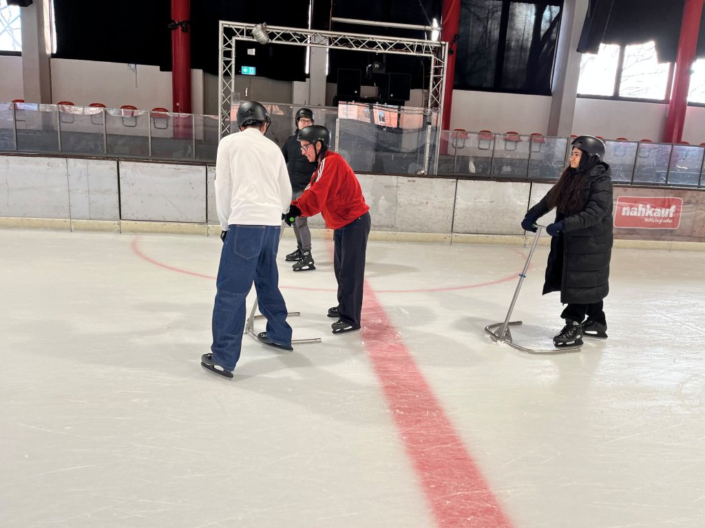 Am 12. Dezember war es wieder soweit: Das alljährliche Eislaufen der Jahrgangsstufen EF und Q1 in der Eissporthalle Solingen begleitet von Frau Mölleken, Herrn Malinowski und Frau Gymnich fand erneut statt. Teilweise mit Unterstützung durch die Eislaufhilfen wurde das Solinger Eis erobert und einige Runden auf dem Eis gedreht. Inspiriert durch die trainierenden Eiskunstläuferinnen versuchten sich ebenfalls ein paar der Schülerinnen und Schüler an kleinen Kunststückchen oder halfen ihren Mitschülerinnen und Mitschülern beim Fahren auf dem Eis.