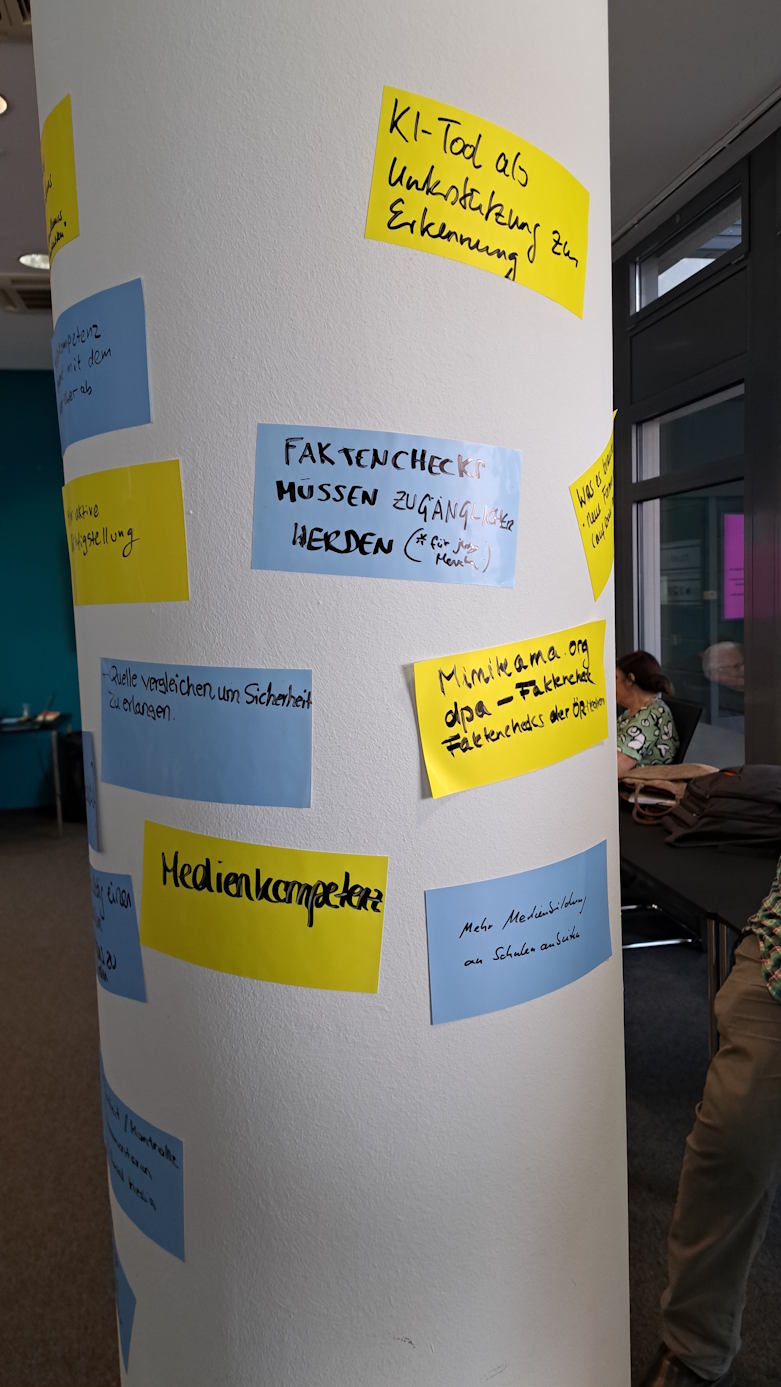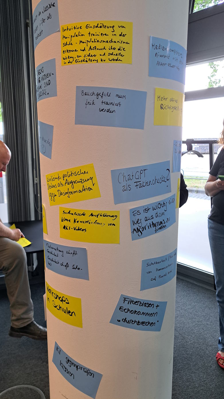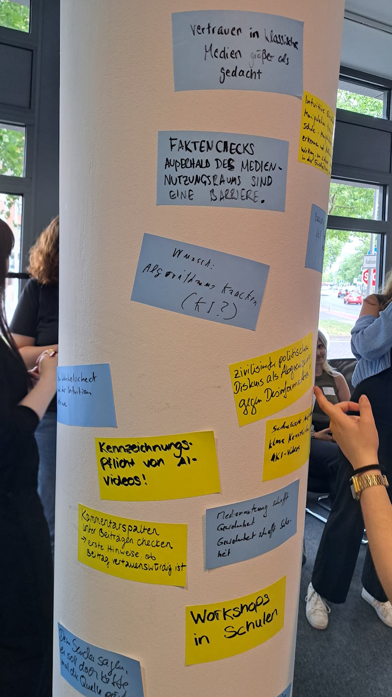 Dieser Workshop thematisierte, wie wichtig es ist, sichere und offene Räume für Diskussionen zu schaffen – sowohl in der Schule als auch im digitalen Raum. Die Teilnehmenden sammelten Ideen, wie man konstruktive Gespräche fördern und Polarisierungen abbauen kann. Dabei wurde deutlich, wie bedeutsam Zuhören, Toleranz und Gesprächskultur in einer vielfältigen Gesellschaft sind.