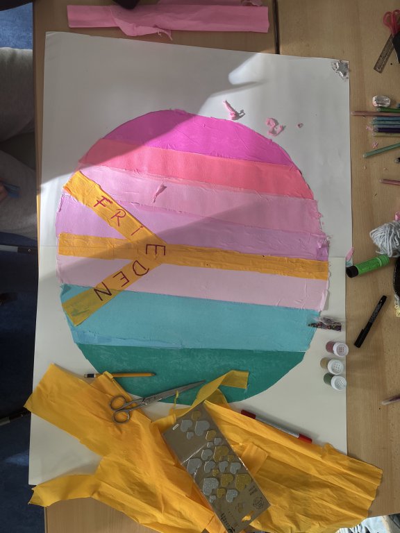 Unter dem Motto „Wir gestalten unsere Schule neu“ haben sich in der Projektwoche SchülerInnen der Jahrgangsstufe 7 zusammengefunden. Nach kurzer gemeinsamer Überlegung kamen wir zu dem Schluss, dass das Thema „Frieden“ uns momentan sehr beschäftigt und dass wir uns dieser Thematik widmen wollen.