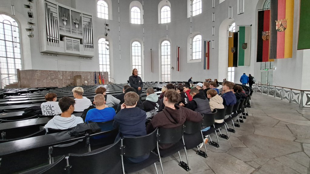 Am Nachmittag stand dann der Besuch im Geldmuseum der Deutschen Bundesbank auf dem Programm. Hier wurde uns auf interessante Weise die Geschichte des Geldes und das Thema Währungen nähergebracht. Die Schülerinnen und Schüler lernten viel über die Aufgaben der Deutschen Bundesbank, die Stabilität des Euro und die Welt der Banknoten und Münzen. Ein Highlight war der Bereich, in dem wir eine echte Goldbarre sehen und anfassen durften – ein beeindruckendes Erlebnis