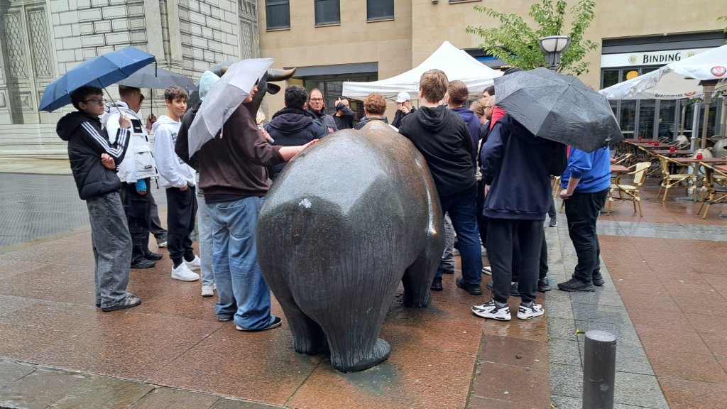 Zwischen den Hochhäusern sahen wir aber auch historische Gebäude und erfuhren von der reichen Geschichte Frankfurts, die bis ins Mittelalter zurückreicht. Unser Stadtführer zeigte uns den Römer, das Rathaus der Stadt, und erklärte uns, wie sich Frankfurt nach dem Zweiten Weltkrieg von einer zerstörten Stadt zur heutigen Finanzmetropole entwickelt hat. Diese Mischung aus Geschichte und Moderne hinterließ bei allen einen bleibenden Eindruck.