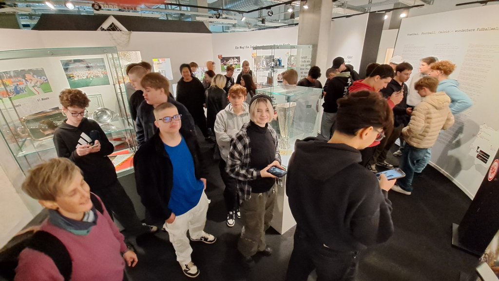 Im Anschluss besuchten wir das Eintracht Frankfurt Museum, das sich direkt im Stadion befindet. Hier erfuhren wir viel über die traditionsreiche Geschichte des Vereins, seine größten Erfolge und die Entwicklung des Fußballs in Frankfurt. Die Ausstellung zeigte Originaltrikots, historische Fotos und Pokale, die die Geschichte und Leidenschaft für Eintracht Frankfurt eindrucksvoll dokumentieren.