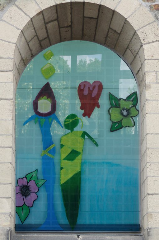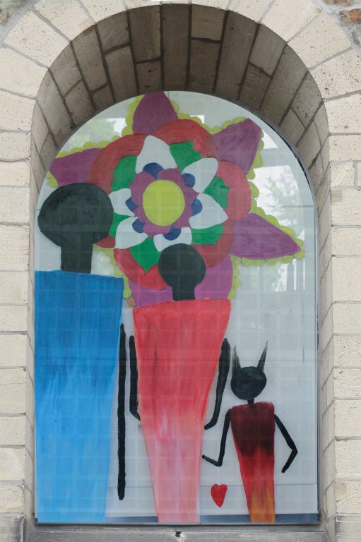 Es sind abstrakte bunte Figuren, die miteinander sprechen oder auf andere Weise in Verbindung kommen. Übergreifende Themen für die transparenten Acrylfenster-Kunstwerke sind Werte wie Freiheit, Respekt, Toleranz, gutes Leben und gutes Handeln, die mit unserer evangelischen Religion verbunden sind. Einige Kirchenfenster werden mit den Kunstwerken „verkleidet“.