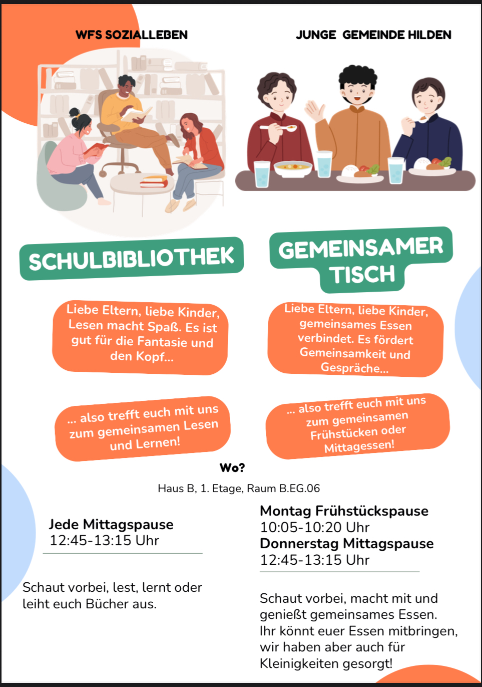 Schulbibliothek & gemeinsamer Tisch in Haus B