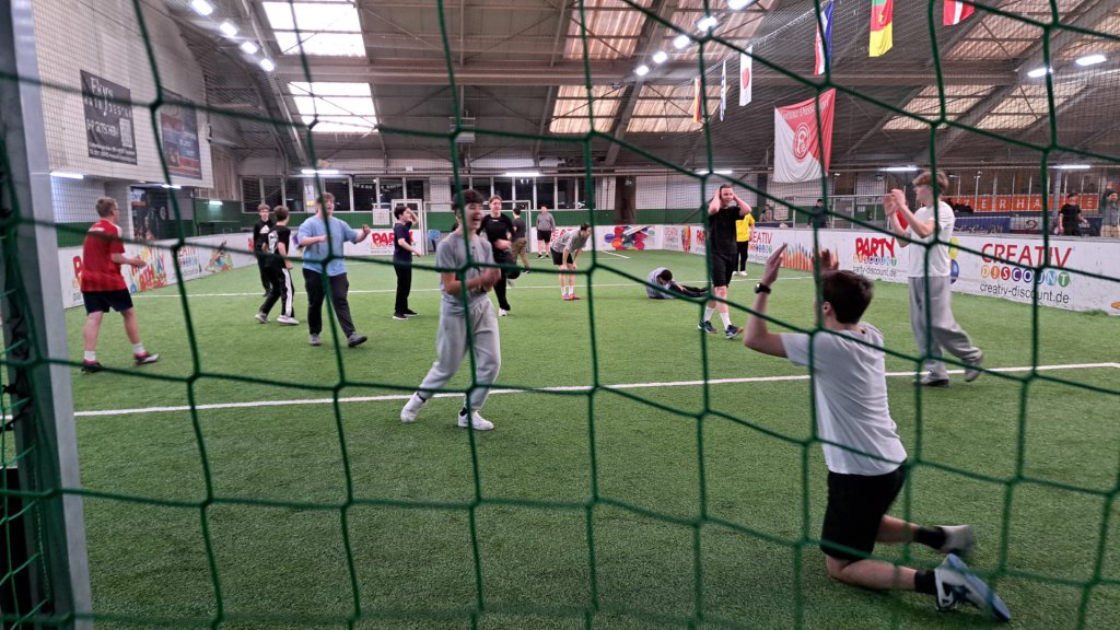 Der Bus fuhr nur mit minimaler Verspätung vor und brachte uns aus dem verschneiten Hilden direkt nach Mettmann, wo es vor der Schule beinahe zu einer Kollision mit einem entgegenschlitternden Auto kam. Endlich konnte der sportliche Teil des Tages beginnen! Die Motivation war groß den Titel zu verteidigen und erneut an unsere Schule zu holen, allerdings fiel direkt beim Betreten der Halle auf, dass die anderen Schüler alle älter waren. Wie sich herausstellte, wurden im Vorfeld die falschen Unterlagen zugeschickt, sodass die Mannschaft der WFS in einer höheren Altersgruppe antreten musste. Die Chancen standen dennoch gut, mit gutem Teamwork und hohem Einsatz, erster zu werden.